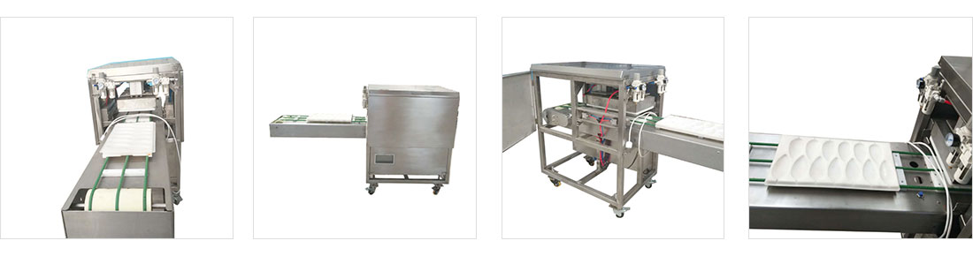 Chicken fillet tamping machine is a kind of automatic forming equipment for chicken fillet. The unformed chicken fillet which has been stringed is molded into the ideal shape through the compression of the die. It can replace the traditional process (manual hand forming). It has the characteristics of beautiful appearance, convenient operation, high production efficiency, labor saving and cost saving. The machine is made of 304 stainless steel and is durable; The action parts adopt the way of pneumatic and electric matching; The control component is an intelligent microcomputer control, which saves effort, time and effort.