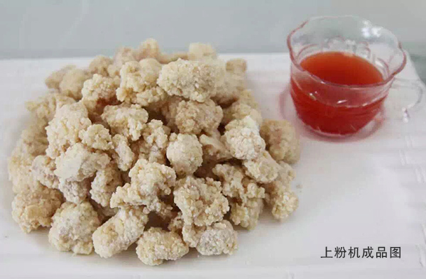 ·将产品埋入粉中裹附,裹粉充分,上粉率高;